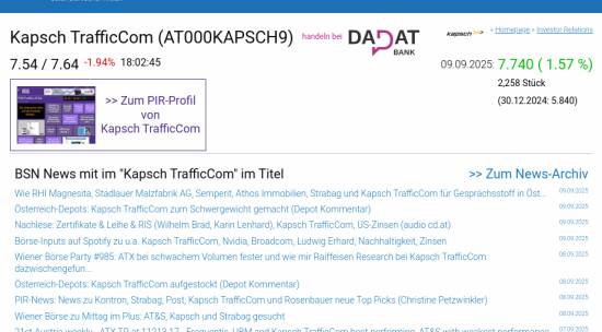 Kapsch TrafficCom am 9.9. 1,57%, Volumen 32% normaler Tage