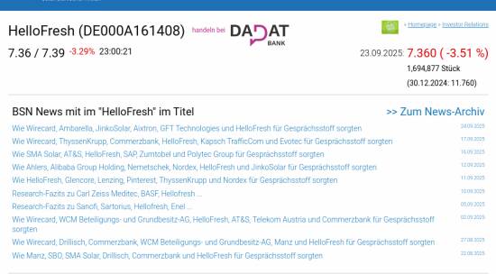 HelloFresh am 23.9. -3,51%, Volumen 152% normaler Tage