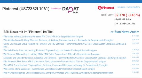 Pinterest am 30.9. -3,45%, Volumen 110% normaler Tage