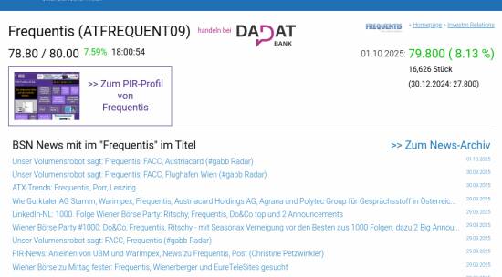 Frequentis am 1.10. 8,13%, Volumen 245% normaler Tage