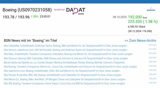 Boeing am 8.10. 1,58%, Volumen 74% normaler Tage