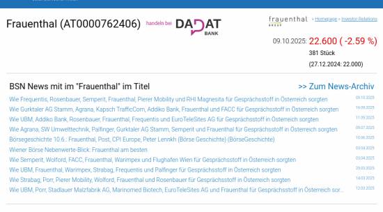 Frauenthal am 9.10. -2,59%, Volumen 313% normaler Tage