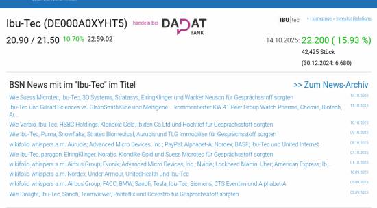 Ibu-Tec am 14.10. 15,93%, Volumen 554% normaler Tage