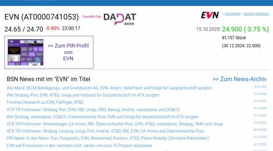 EVN am 15.10. 3,75%, Volumen 138% normaler Tage