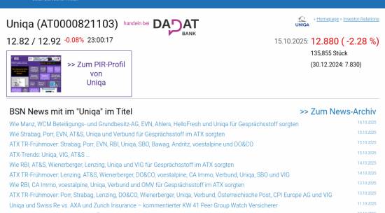 Uniqa am 15.10. -2,28%, Volumen 78% normaler Tage