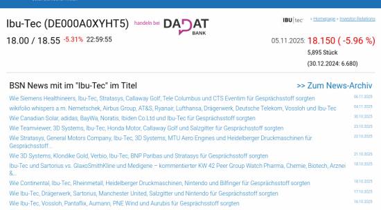 Ibu-Tec am 5.11. -5,96%, Volumen 69% normaler Tage