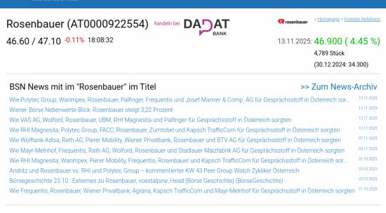 Rosenbauer am 13.11. 4,45%, Volumen 176% normaler Tage