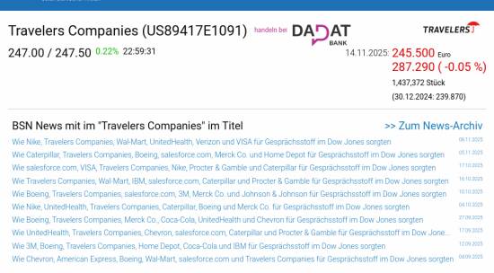 Travelers Companies am 14.11. -0,05%, Volumen 110% normaler Tage