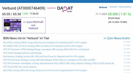 Verbund am 17.11. 1,01%, Volumen 71% normaler Tage