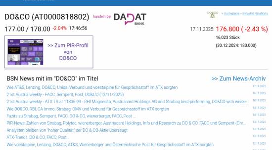 DO&CO am 17.11. -2,43%, Volumen 114% normaler Tage