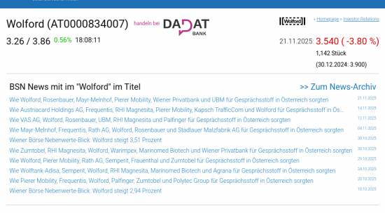 Wolford am 21.11. -3,80%, Volumen 157% normaler Tage