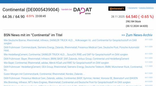 Continental am 28.11. -0,65%, Volumen 61% normaler Tage