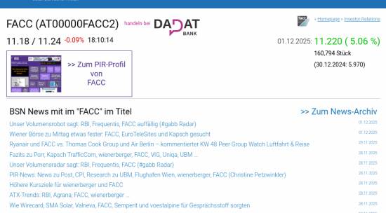 FACC am 1.12. 5,06%, Volumen 378% normaler Tage