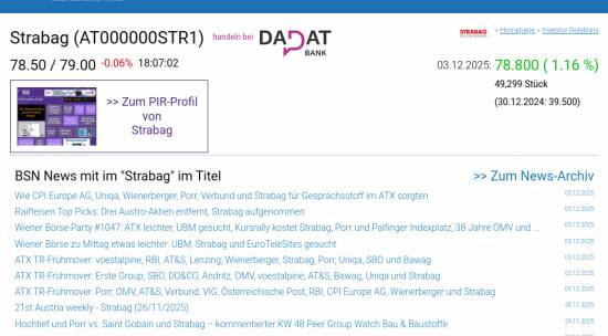 Strabag am 3.12. 1,16%, Volumen 114% normaler Tage