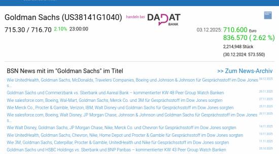 Goldman Sachs am 3.12. 2,62%, Volumen 94% normaler Tage