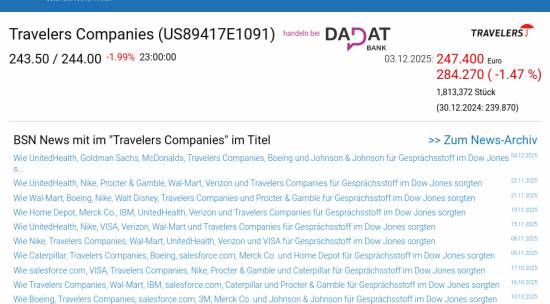 Travelers Companies am 3.12. -1,47%, Volumen 139% normaler Tage