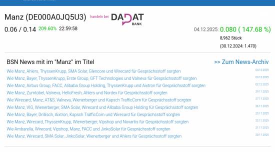 Manz am 4.12. 147,68%, Volumen 81% normaler Tage