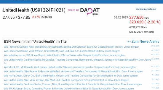 UnitedHealth am 8.12. -2,20%, Volumen 40% normaler Tage