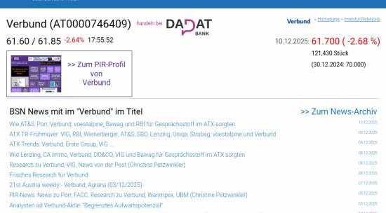 Verbund am 10.12. -2,68%, Volumen 95% normaler Tage
