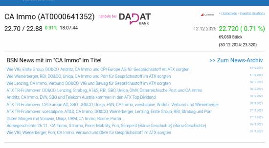 CA Immo am 12.12. 0,71%, Volumen 91% normaler Tage
