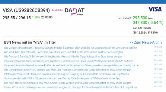 VISA am 12.12. 0,64%, Volumen 108% normaler Tage
