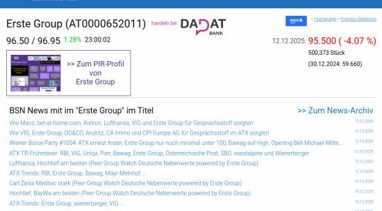 Erste Group am 12.12. -4,07%, Volumen 112% normaler Tage