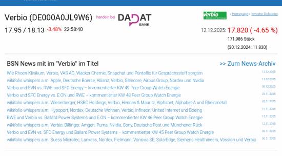 Verbio am 12.12. -4,65%, Volumen 109% normaler Tage