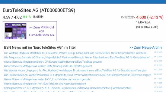 EuroTeleSites AG am 15.12. -2,13%, Volumen 100% normaler Tage