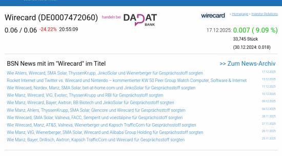 Wirecard am 17.12. 9,09%, Volumen 25% normaler Tage