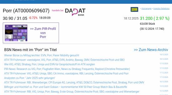 Porr am 18.12. 2,97%, Volumen 98% normaler Tage