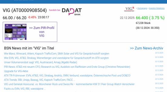 VIG am 22.12. 3,75%, Volumen 144% normaler Tage