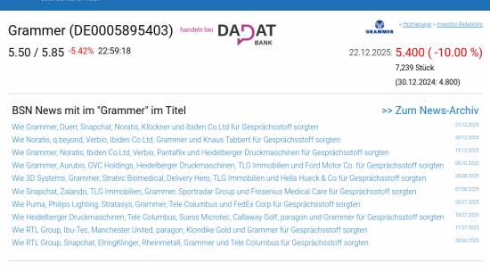 Grammer am 22.12. -10,00%, Volumen 543% normaler Tage