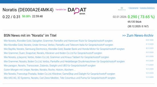 Noratis am 2.1. 73,65%, Volumen 100% normaler Tage