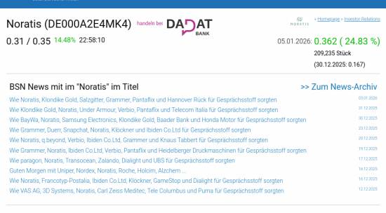 Noratis am 5.1. 24,83%, Volumen 150% normaler Tage