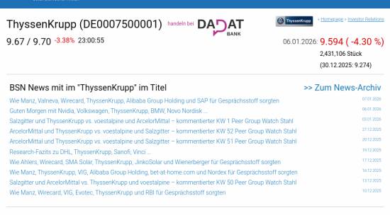 ThyssenKrupp am 6.1. -4,30%, Volumen 76% normaler Tage