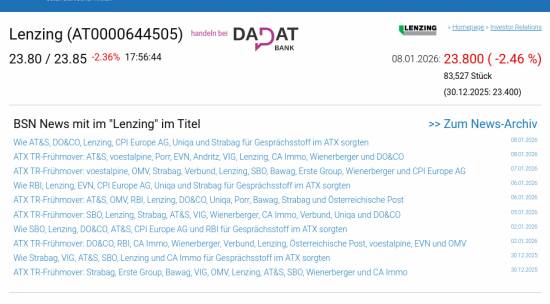 Lenzing am 8.1. -2,46%, Volumen 115% normaler Tage