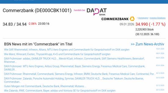 Commerzbank am 9.1. -1,77%, Volumen 92% normaler Tage