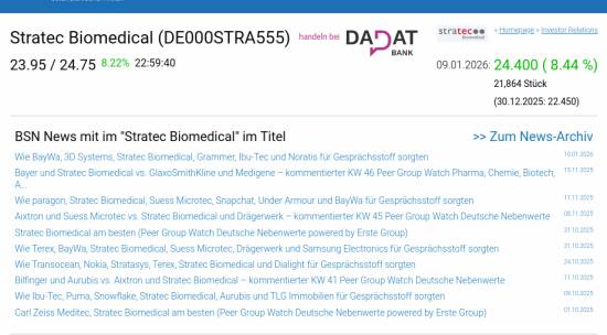 Stratec Biomedical am 9.1. 8,44%, Volumen 214% normaler Tage