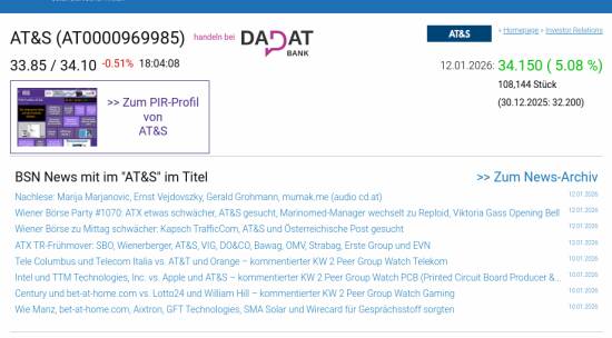 AT&S am 12.1. 5,08%, Volumen 112% normaler Tage