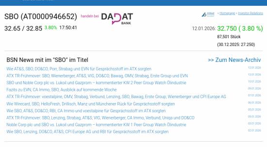 SBO am 12.1. 3,80%, Volumen 92% normaler Tage