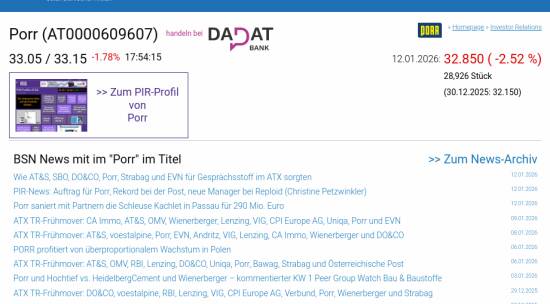Porr am 12.1. -2,52%, Volumen 79% normaler Tage