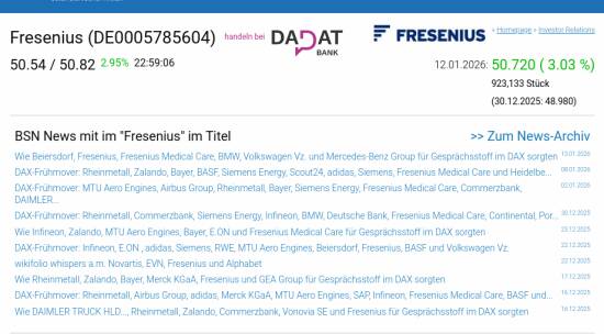 Fresenius am 12.1. 3,03%, Volumen 152% normaler Tage