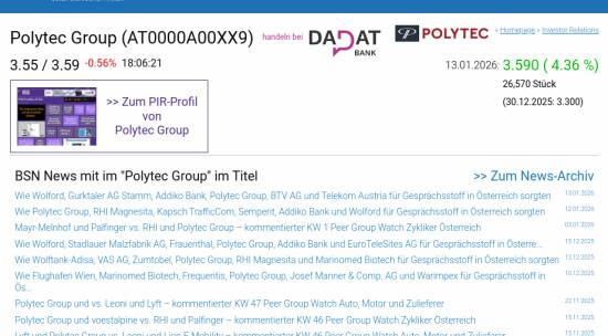 Polytec Group am 13.1. 4,36%, Volumen 148% normaler Tage
