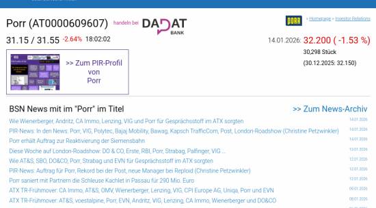 Porr am 14.1. -1,53%, Volumen 89% normaler Tage