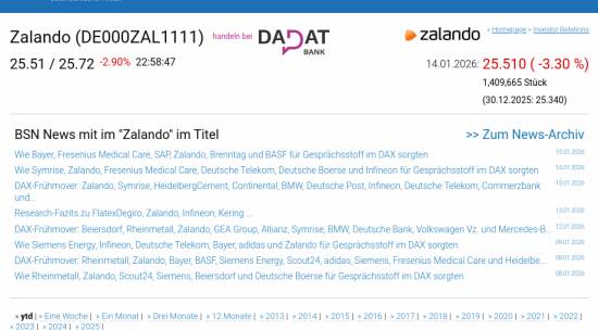 Zalando am 14.1. -3,30%, Volumen 99% normaler Tage
