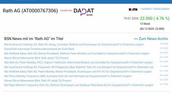 Rath AG am 19.1. 4,76%, Volumen 14% normaler Tage