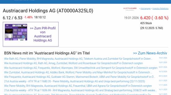 Austriacard Holdings AG am 19.1. -3,60%, Volumen 9% normaler Tage