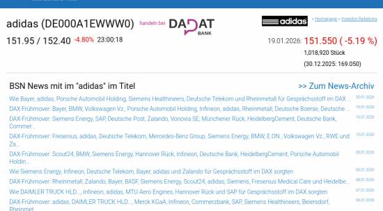 adidas am 19.1. -5,19%, Volumen 131% normaler Tage