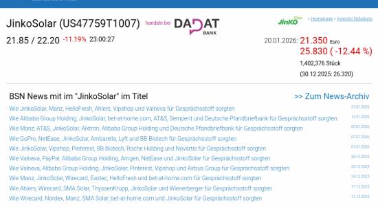 JinkoSolar am 20.1. -12,44%, Volumen 157% normaler Tage