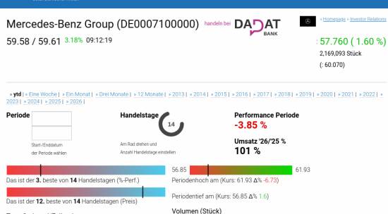 >> Aus dem Artikel: DAX-Frühmover: Volkswagen Vz., Deutsche Boerse, Porsche Automobil Holding, Mercedes-Benz Group, Rheinmetall, BMW, Bayer, MTU Aero Engines, Beiersdorf und Henkel